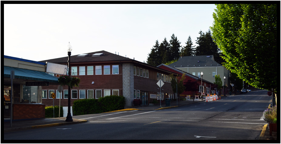 A small difficult hillside lot on Toledo's main street across from the City Hall.