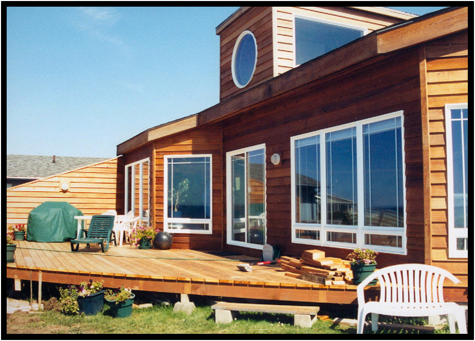 Large new cedar deck, Turnstone Cove III Residence, Yachats, Oregon, USA, 1999.