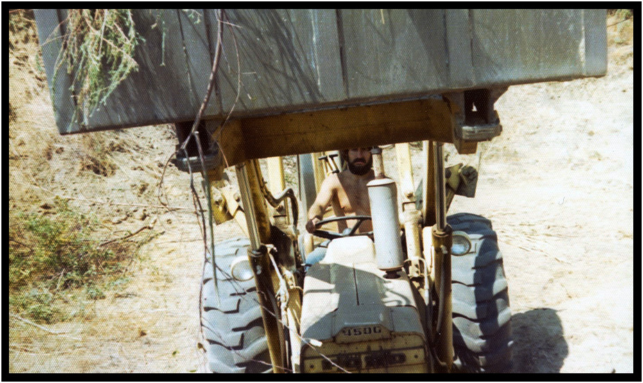 Doing the rough cutting with a rented excavator, Sunhollow House, Burbank, California, USA, 1976.