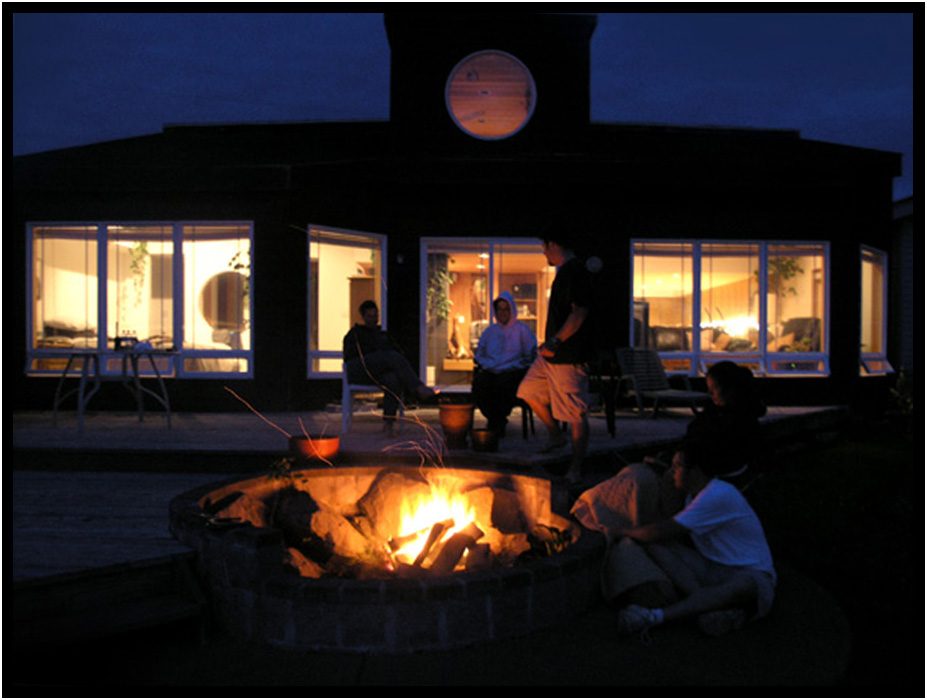 Finished fire pit in use, Turnstone Cove, Yachats, Oregon, USA, 2004.