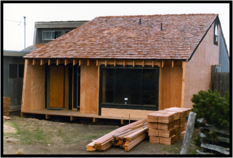 Guest Suite cedar shake roofing, Turnstone Cove II, Yachats, Oregon, USA, 1982.