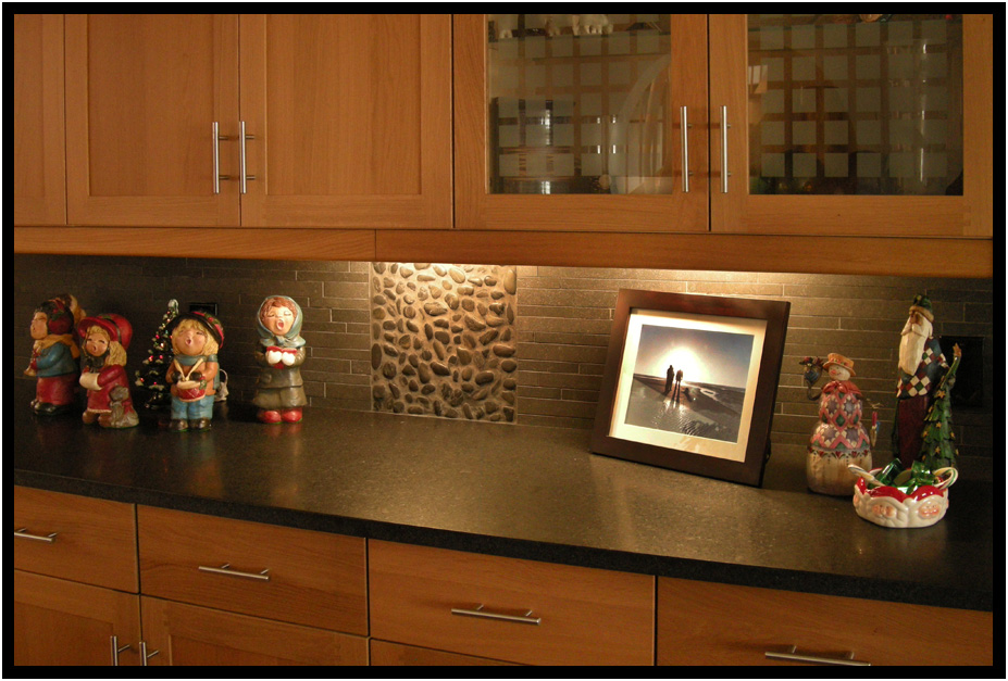 Counter splash tiling, Kitchen and Diningroom, Turnstone Cove, Yachats, Oregon, USA, 2011.