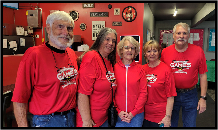 Our team partners, Patsy & Dennis Burtchett, with Huntsman Bowling coordinator, Annett, Huntsman World Senior Games, St. George, Utah, 2024.