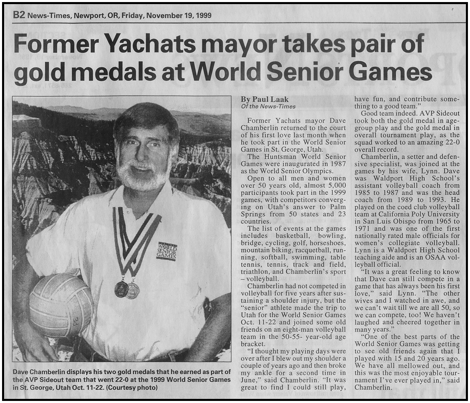 In 1999, some old friends and team mates from California invited me to join their volleyball team at the Huntsman World Senior Games in St. George, Utah.