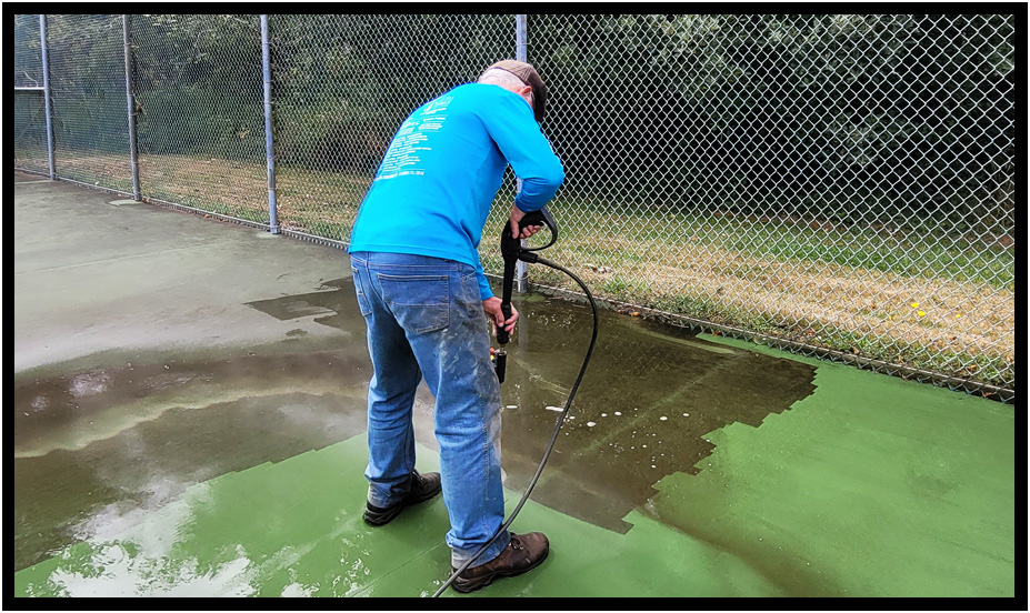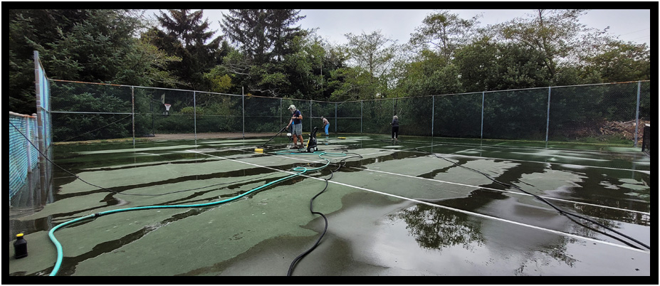 Our clean-up of the existing tennis court... power washing, weeding, setting new lines, etc, Quiet Water, Yachats, Oregon, 2024.