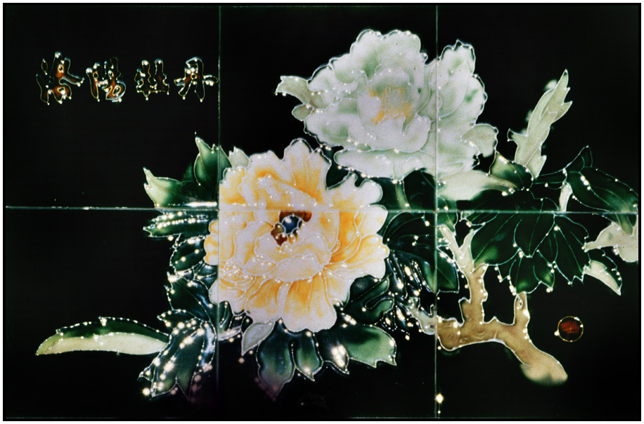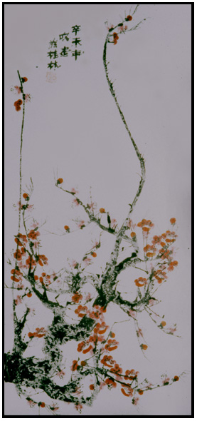 This "official" artist placed ink or paint on the canvas and then blew it across the surface with his mouth to form beautiful branches with colorful blossums.