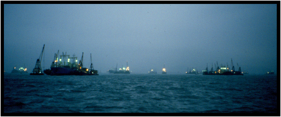 Ships in the fog, Hong Kong Harbor, Hong Kong, China, 1991.