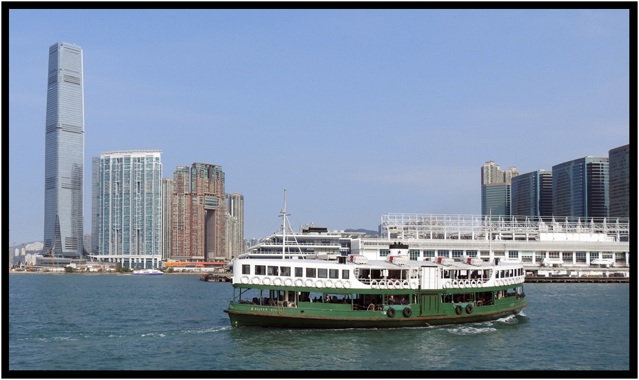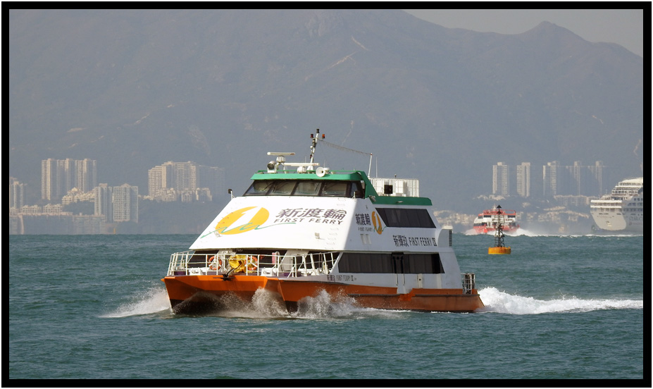 First Ferry crossing the harbor, Hong Kong, China, 2020.