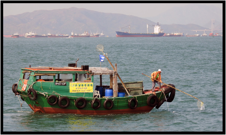 Fisherman, Hong Kong Harbor, Hong Kong, China, 2020.