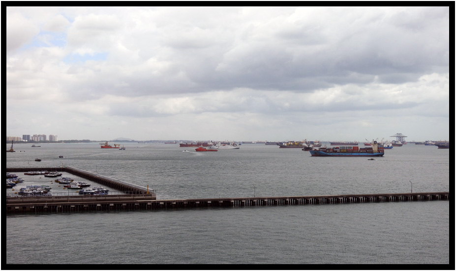 Ships in harbor, Singapore, 2020.