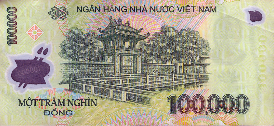 100,000 Vietnamese Dong bill... about $4.30 US, Vietnam, 2020.
