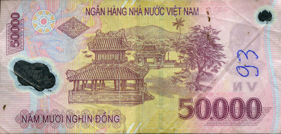 50,000 Vietnamese Dong bill... about $2.15 US, Vietnam, 2020.