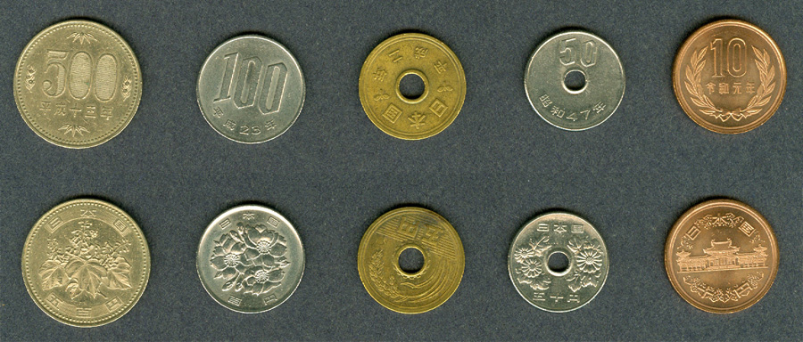 Coins, left to right: Five Hundred Dong coin, One Hundred Dong coin, ?, 50 Dong coin, 10 Dong coin.