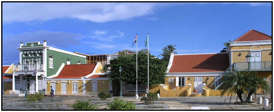 This is a view of the "square" located a block off the waterfront drive, Oranjestad, Aruba, 2011.
