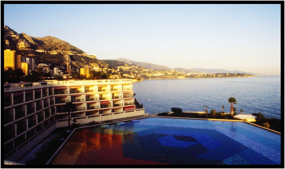 Coastline looking out over the Fairmont Monte Carlo Resort, Monte Carlo, Monaco, 1991.