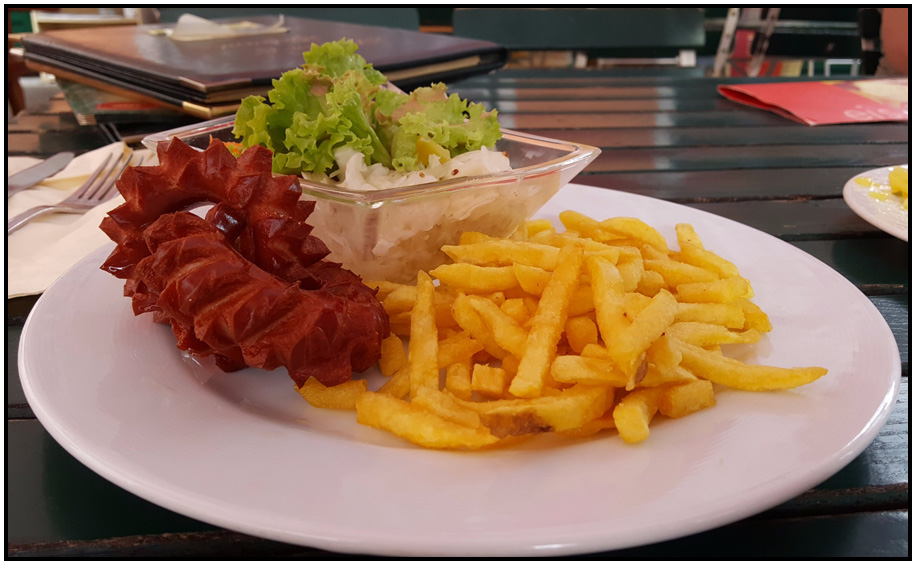Bratwurst, Dorfwirt, Ebenau, Austria, 2017.