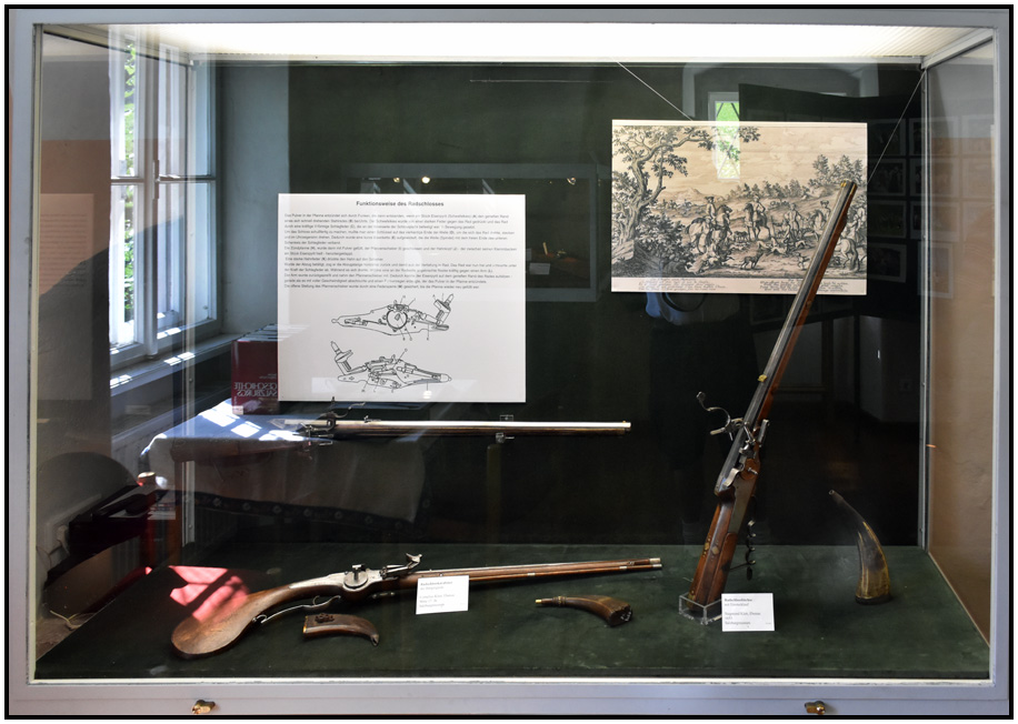 Fine gun works with beautifully inlaid wood stocks, Ebenau Museum, Ebenau, Austria, 2017.
