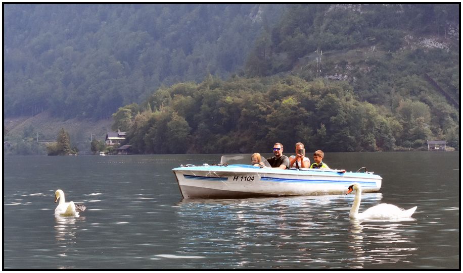 Wyatt, Nikki, Justice and Alex among the swans, Lake Hallstatt, Hallstatt, Austria, 2017.