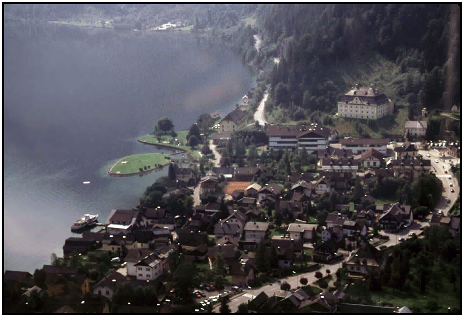 View of the south end of Hallstatt from the Tram, Hallstatt, Austria, 1994.