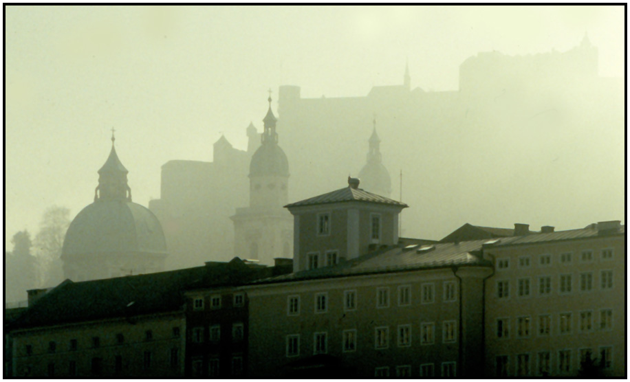 Skyline in the fog, Salzburg, Austria, 1991.