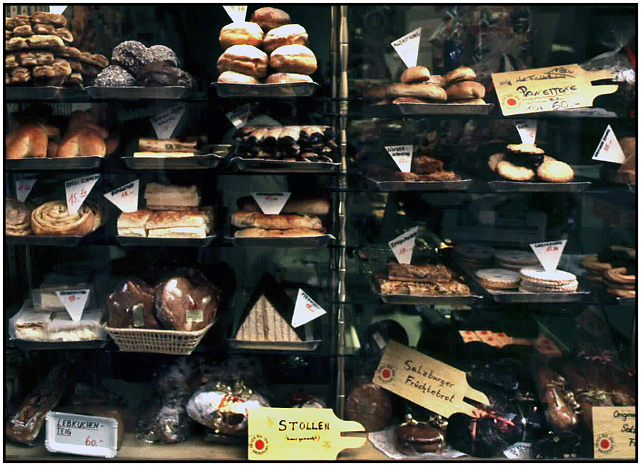 Bakery window, Salzburg, Austria, 1991.