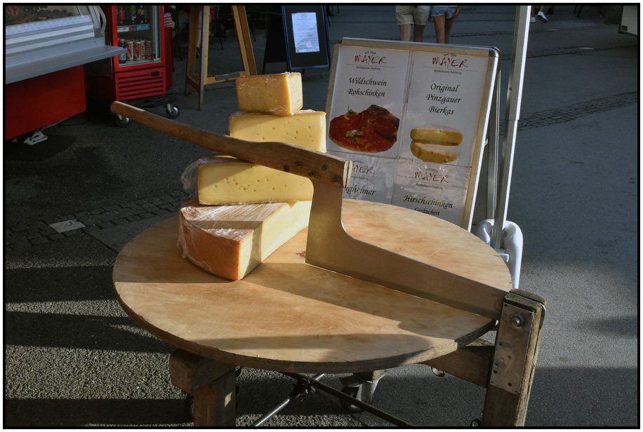 Cheese block, marketplace, Salzburg, Austria, 2017.