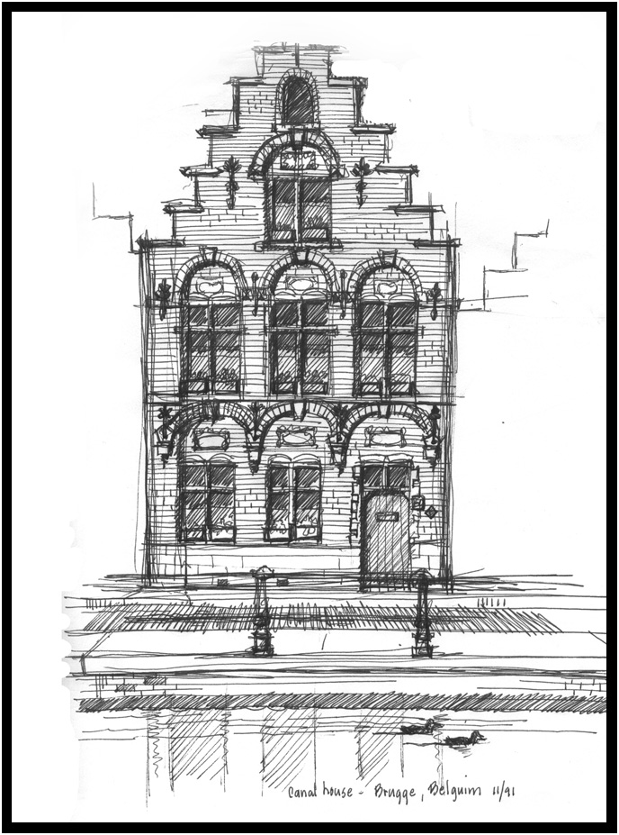 Wyatt and Ryan join me in sketching the architecture along the canals, Brugges, Belgium (1994)