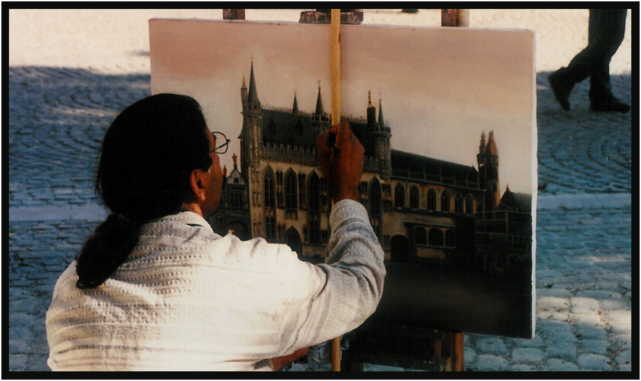 Artist capturing the architecture, Brugge, Belgium, 1999