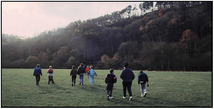 The tour starts with a walk across a field from the tram, Hansurless, Belgium, 1991.