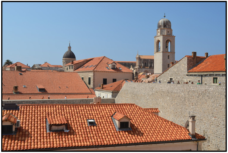 Most of the structures in old town Dubrovnik are sun-bleached masonry with rich red tile roofing."