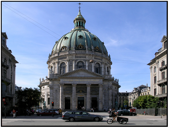 Frederik's Church, known universally as Marmorkirken, "marble church," sits on the main axis beind the Royal Amalienborg Palace.