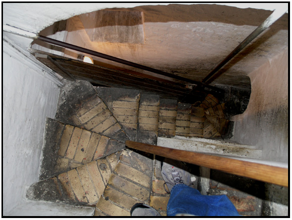 On the long climb up to the top of the dome, the steps get narrower and narrower as you pass between