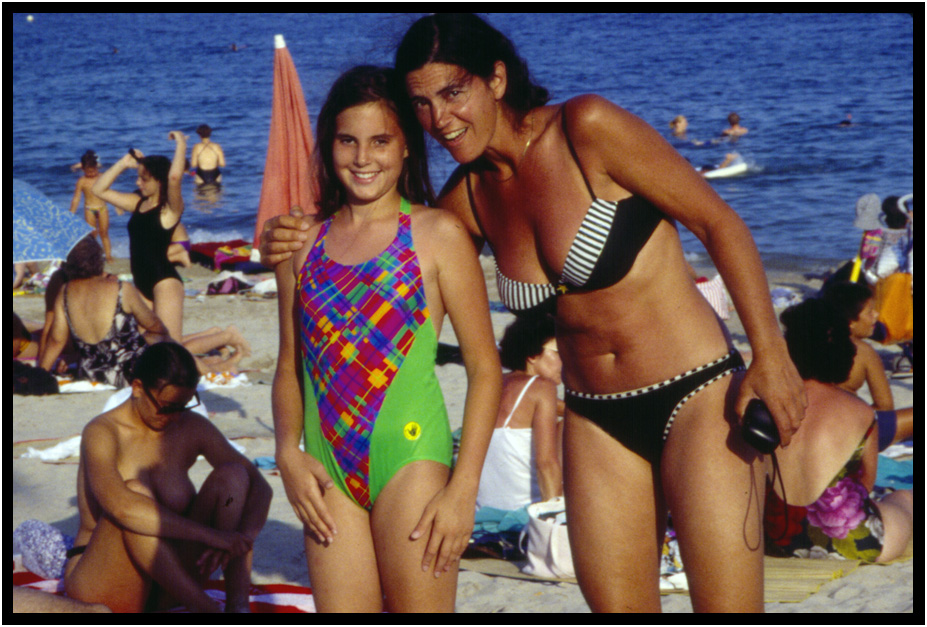 Good friend and volleyball partner, Rose Rahn, and her daughter Bree enjoy the beach, Antibes, France, 1994.