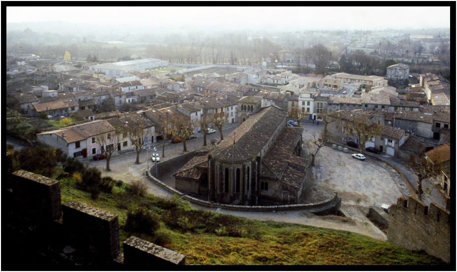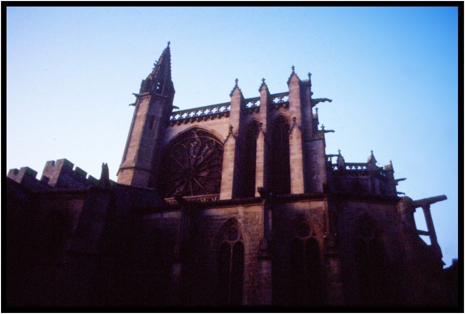 Old church facade, Carcassonne, France, 1991.