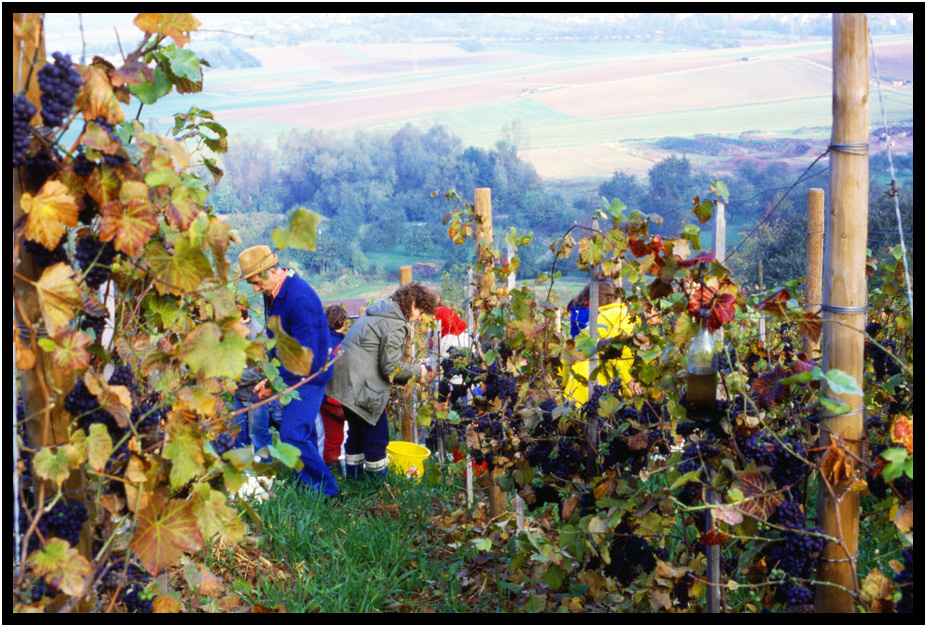 Wine grapes, Brettach, Baden Wurttemberg, Germany, 1984.