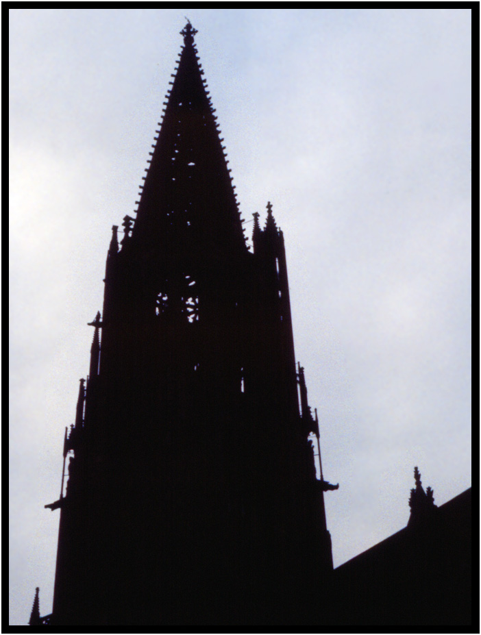 Cathedral steeple at twilight, Freiburg, Germany, 1991.