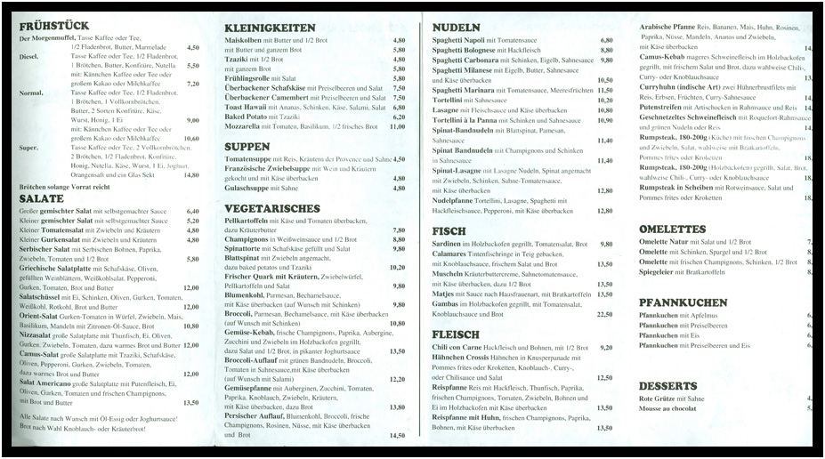 Menu, Camus, Luneburg, Lower Saxony, Germany, 1994.