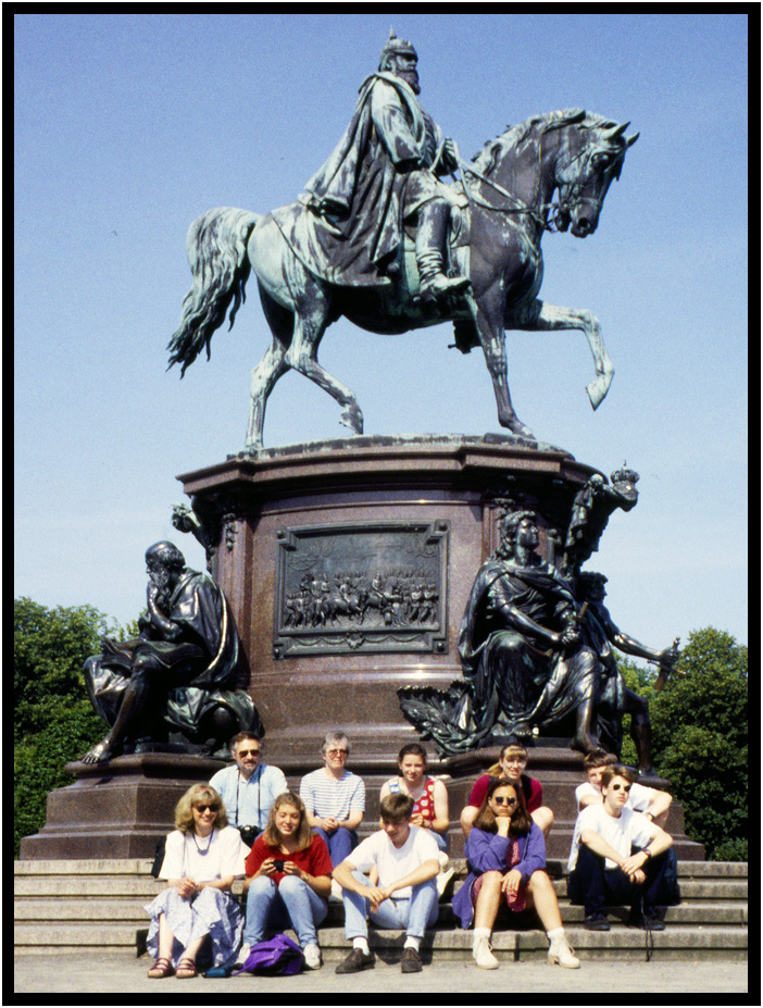 Our exchange student group in front of an equestrian statue of the Grand Duke, Schwerin, Germany, 1994.