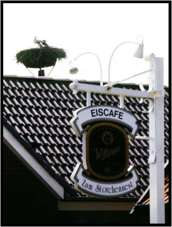Stork nests on chimneys and special platforms were common sights around Schwerin, Germany, 1994.