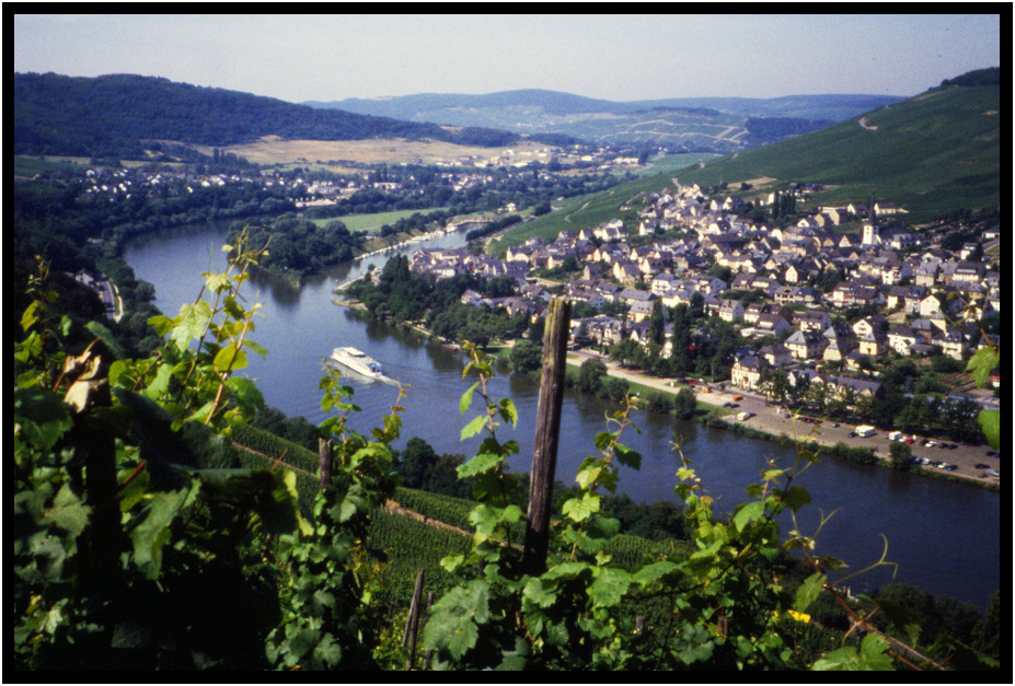 Birds-eye view looking the other way up the Mosel River, Rhineland Palatinate, Germany, 1994.