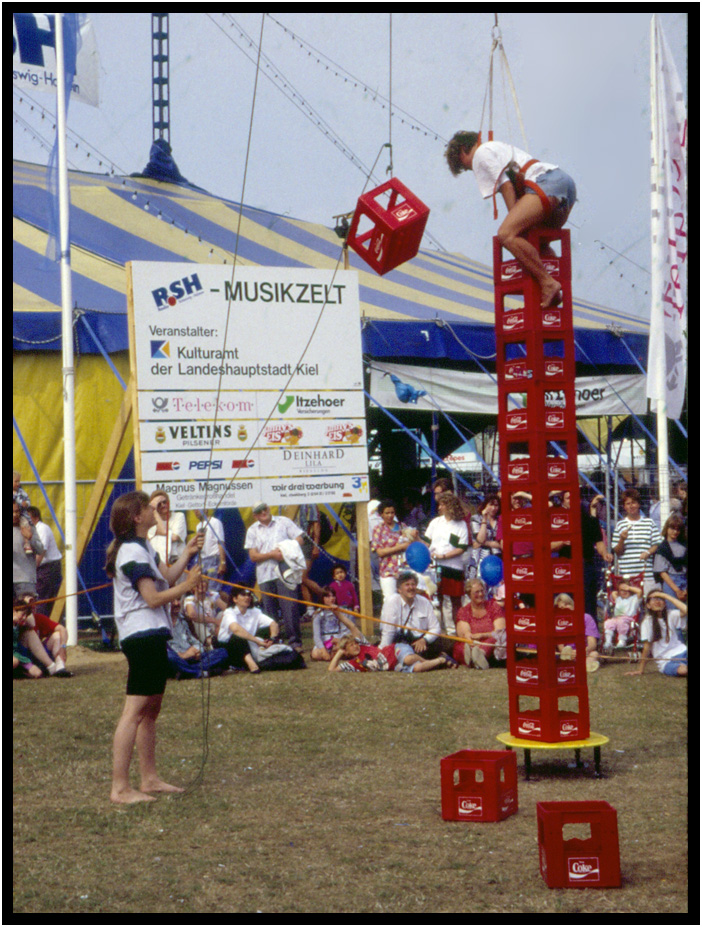 Balancing act, Kieler Woche, Kiel, Schleswig-Holstein, Germany, 1994.