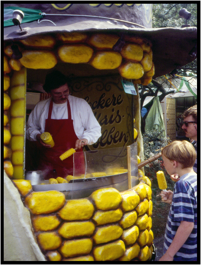 Corn on the cob stand, Kieler Woche, Kiel, Schleswig-Holstein, Germany, 1994.