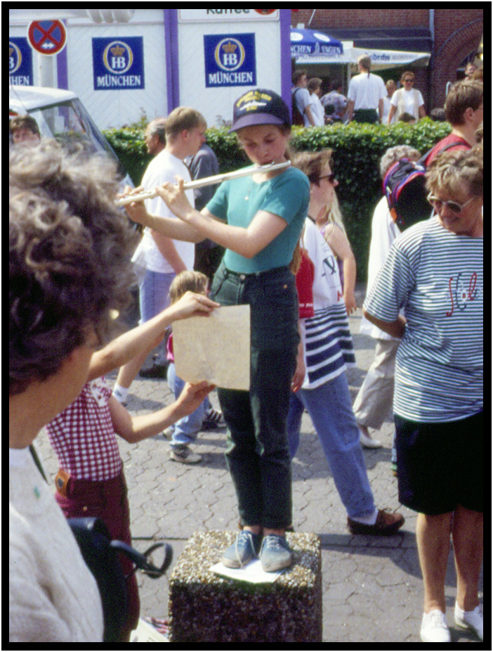 Flute street musician, Kieler Woche, Kiel, Schleswig-Holstein, Germany, 1994.