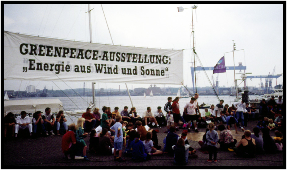 Greenpeace rally, Kieler Woche, Kiel, Schleswig-Holstein, Germany, 1994.
