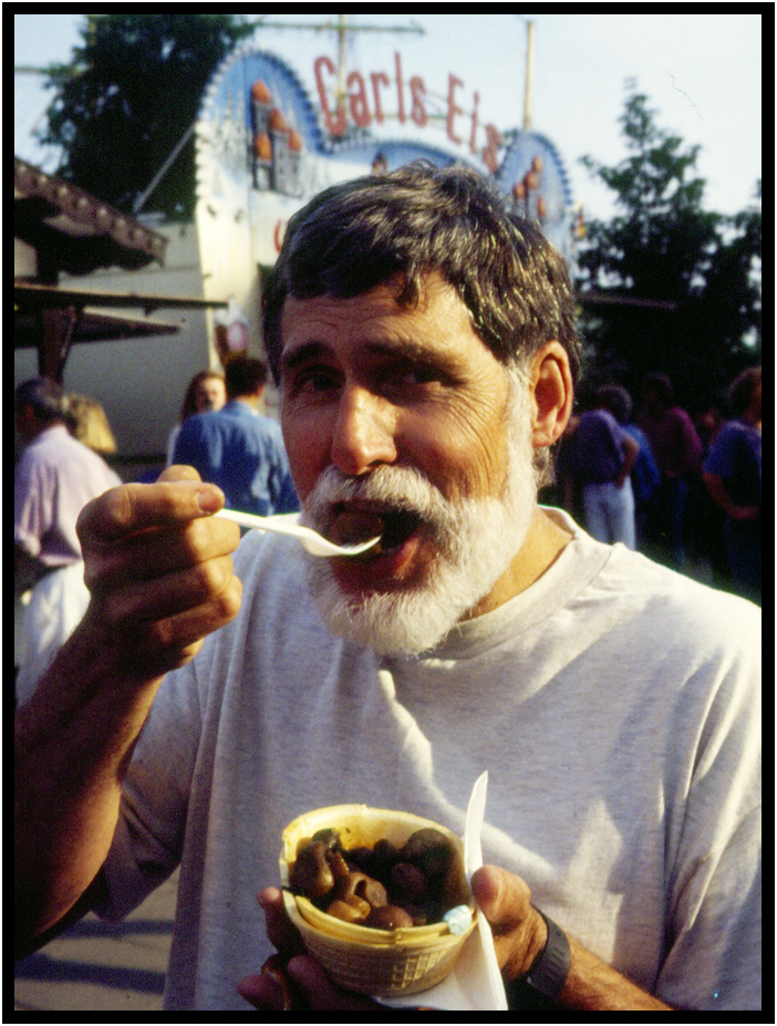 Me enjoying some fresh mushrooms, Kieler Woche, Kiel, Schleswig-Holstein, Germany, 1994.