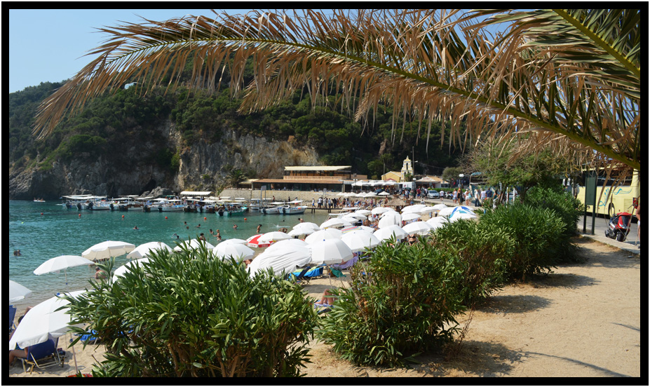 We visited the Achilleion Palace south of Corfu Town, then drove north along the western coast to the popular beach town of Paleokastritsa.