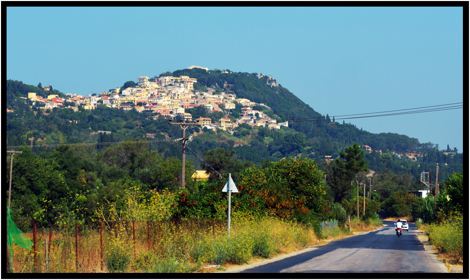 After a swim, a hot short stay on the beach, and a walk along the waterfront, we drove on back across the island and north along the east coast to the beach town of Dassia.