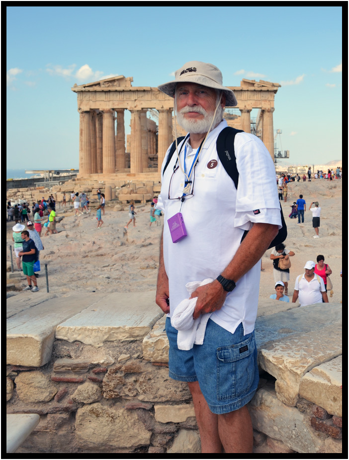 Me, in 1978 and again 35 years later...very hot with my towel and audio guide, Parthenon, Acropolis, Athens, Greece, 1978 and 2013.