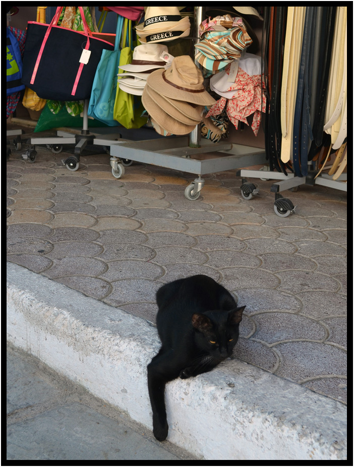 Cat-in-the-hat takes a break in the heat, Katakolon, Greece, 2013.