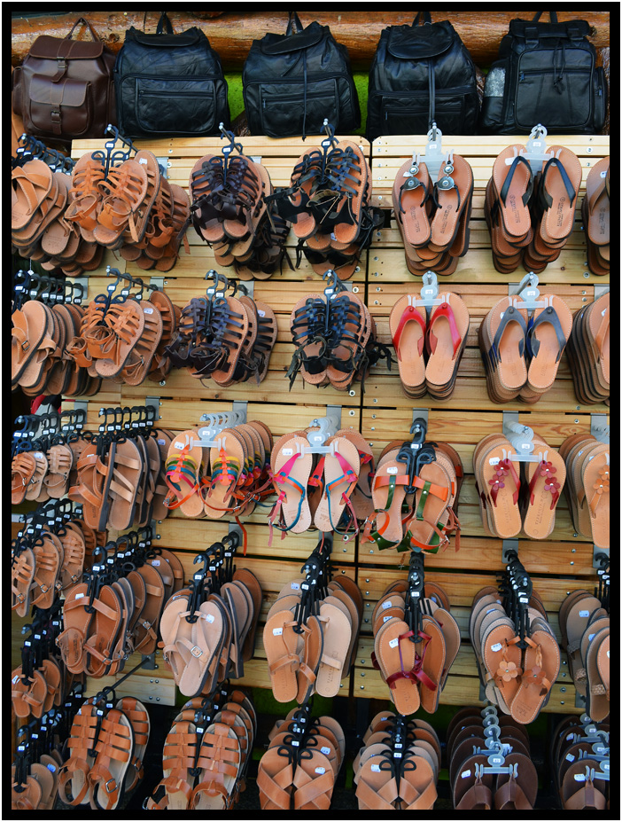 Leather sandals and bags, Katakolon, Greece, 2013.